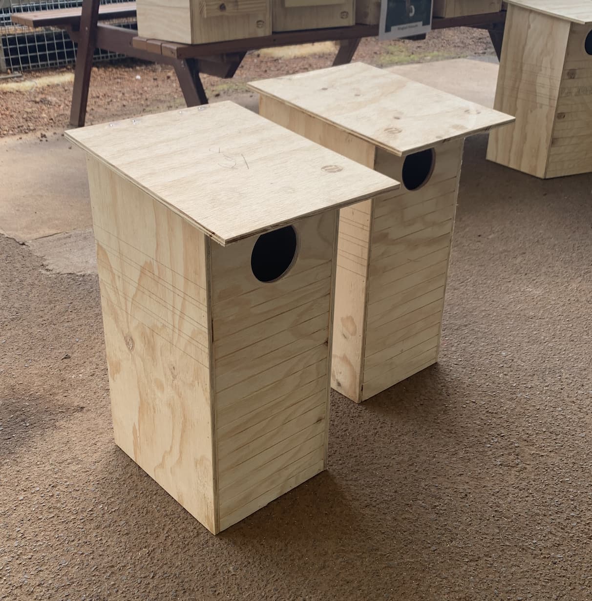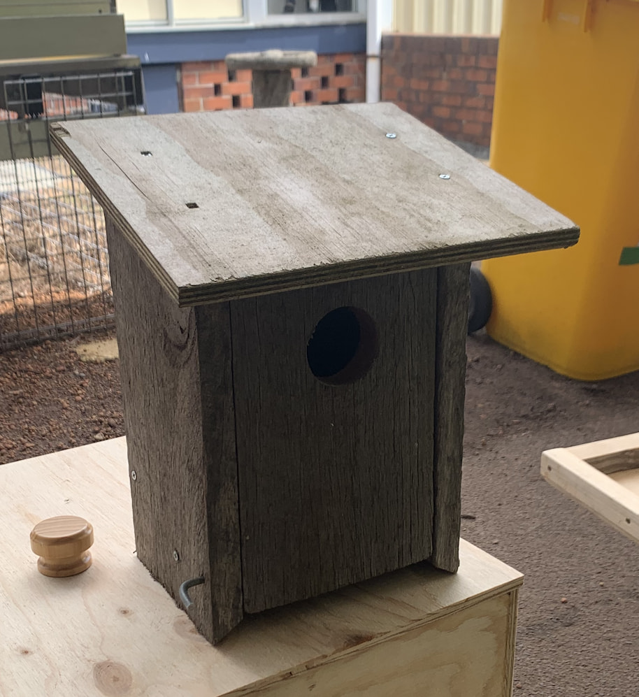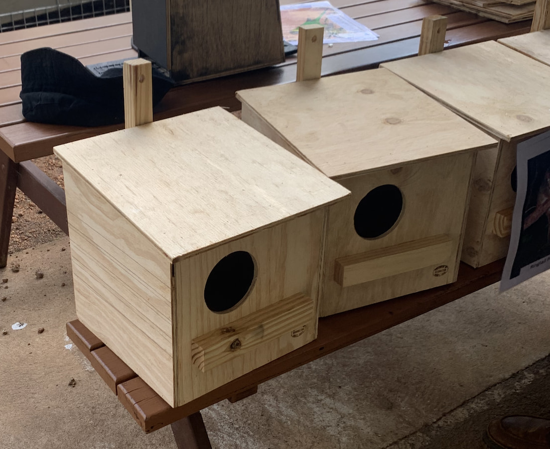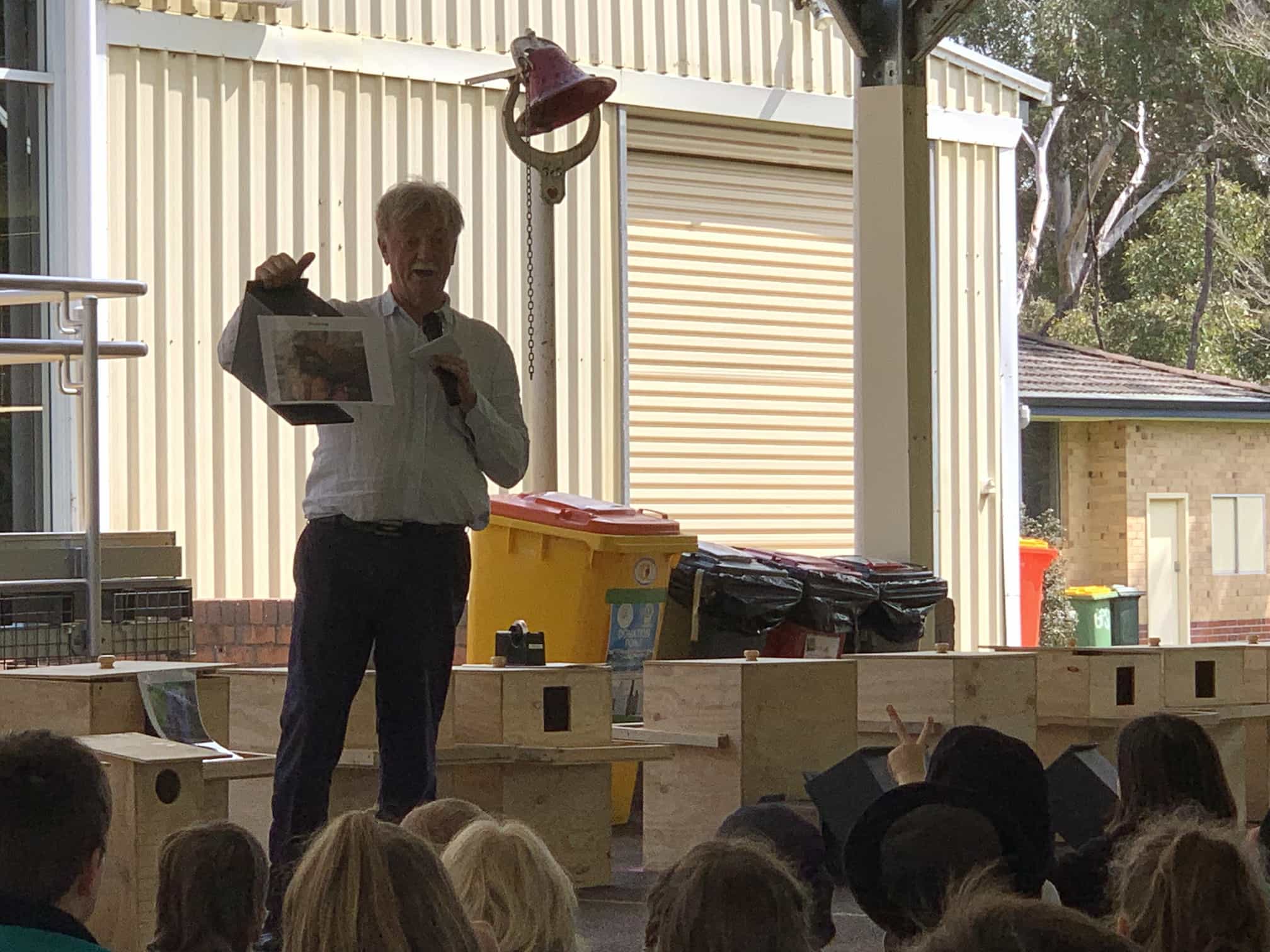 John presents some bird houses to the kids